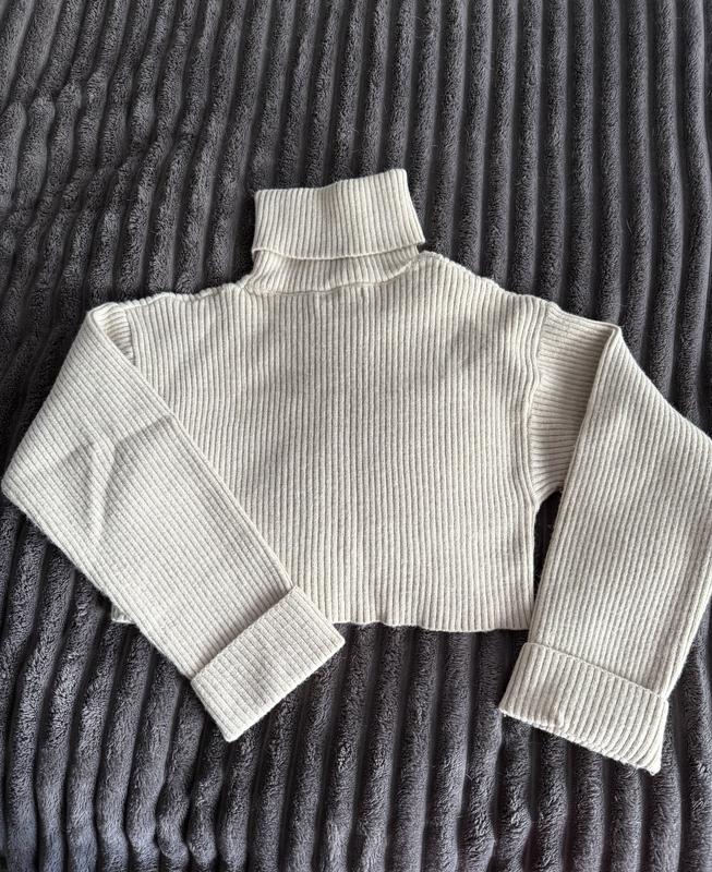 Короткий бежевий светр з широкими рукавами. На розмір ххс-с буде ідеальний оверсайз. Можна і на невелику с.