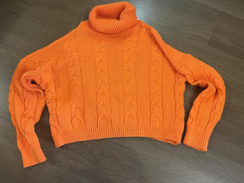 стильний яскравий теплий осінній гольф оверсайз Мʼякий та теплий Півобхват 50 см ,довжина від плеча 42 см .
