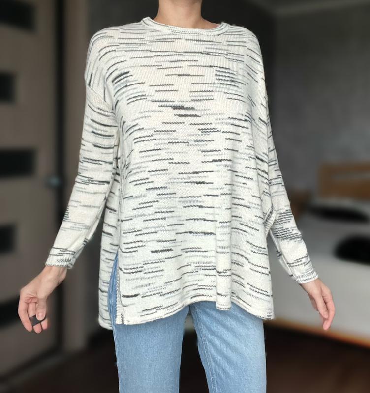 Светрик з меланжевої пряжі, асиметрична, спинка довше. По боках розрізи. Плечі спущені. Розмір xs-s. Стан ідеальний.