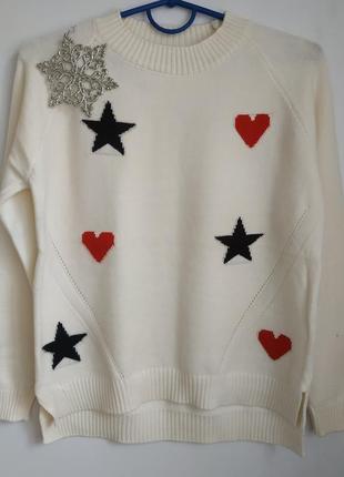 Женский стильный свитерок р.м, отличное качество. Очень красивый. Фабричный Китай. Цвет молочный. СОСТАВ ТКАНИ 60% акрил, 30% шерсть, 10% эластан