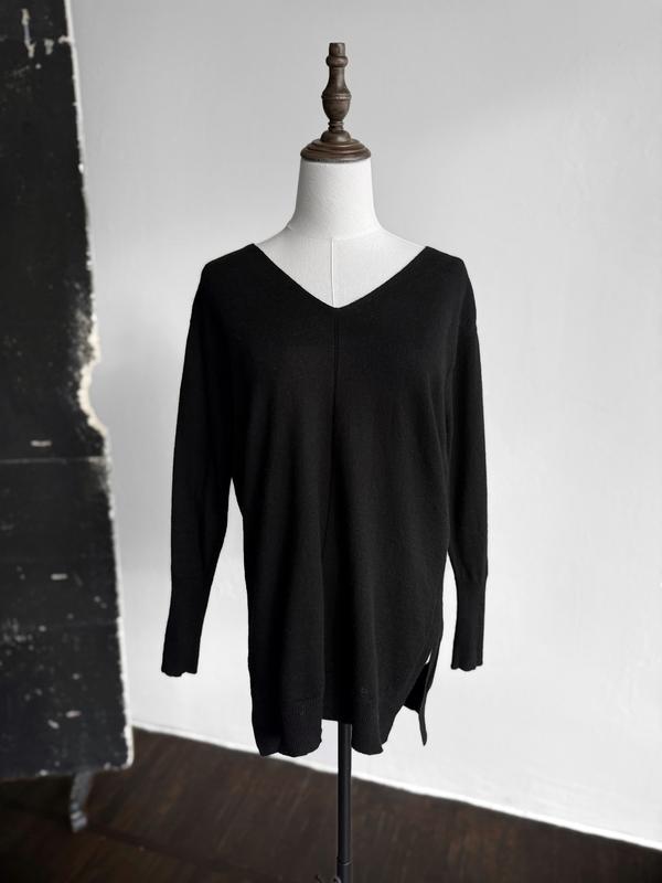 Bimba Y Lola Womens Black V-Neck High Low Hem Pullover Sweater жіночий, чорний, светр, джемпер, бімба і лола ◾️Стан: 5/5 ◾️Розмір: S Заміри: •Довжина спереду від коміра - 53 см •Довжина по спині - 67 см •Довжина рукава від шиї - 64 см •Довжина рукава від плеча - 51 см •Плечі - 47 см •Підмишки - 49 см •Вихід - 43 см
