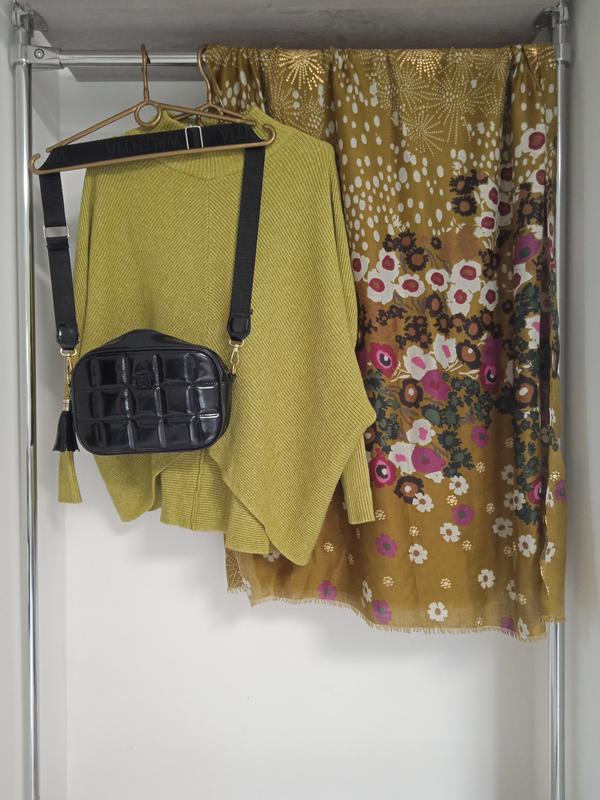 Стильная однотонная кофточка с длинным рукавом светло салатового цвета. Теплая и комфортная. Приятная на ощупь. Фактурная машинная вязка. Толстовка нить. Тянется с легкостью. Ложится свободно -оверсайз. Фасон-летюча миш. Аккуратный хомутик (гольф). По спинке немного длиннее. Красиво смотрится с шарфом в тон в комплекте (шарф может быть заменен, но в цвете). Есть размеры. 54р на пог-58-60 52р на пог-56-58