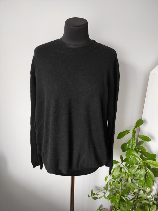 Базовый шерстяной 40 % шерсть свитер оверсайз 18 р от zara Размер - S по бирке, очень большемерит Цвет - черный 40 % шерсть 25 % полиамид 20 % полиэстер 15 % акрил Длина по спинке - 64 см, пог - 63 см, низ - 61 см, рукав - 57 см, плечо - 19 см