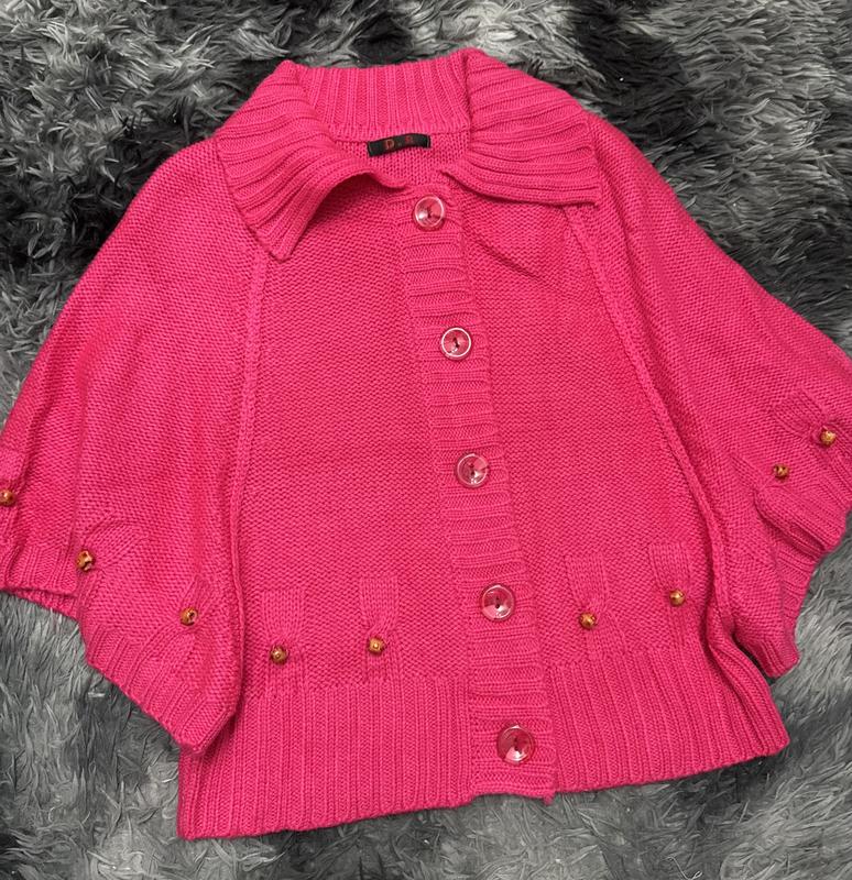 💖 Яскрава рожева кофтинка -кардиган з ґудзиками Літуча миш, універсального розміру Стильна вʼязана кофта насиченого рожевого кольору. Модель з коміром, об’ємними рукавами та декоративними намистинками — виглядає жіночно й оригінально. М’яка, приємна до тіла, ідеально підходить для холодної погоди 📏 Розмір: (від S до Л) 🧶 Матеріал: в’язка / акрил / бавовна 💗 Колір: яскраво-рожевий 📌 Стан: новий, без паперової бірки Додай кольору у свій образ 💫 — поєднується з джинсами, спідницями чи сукнями.