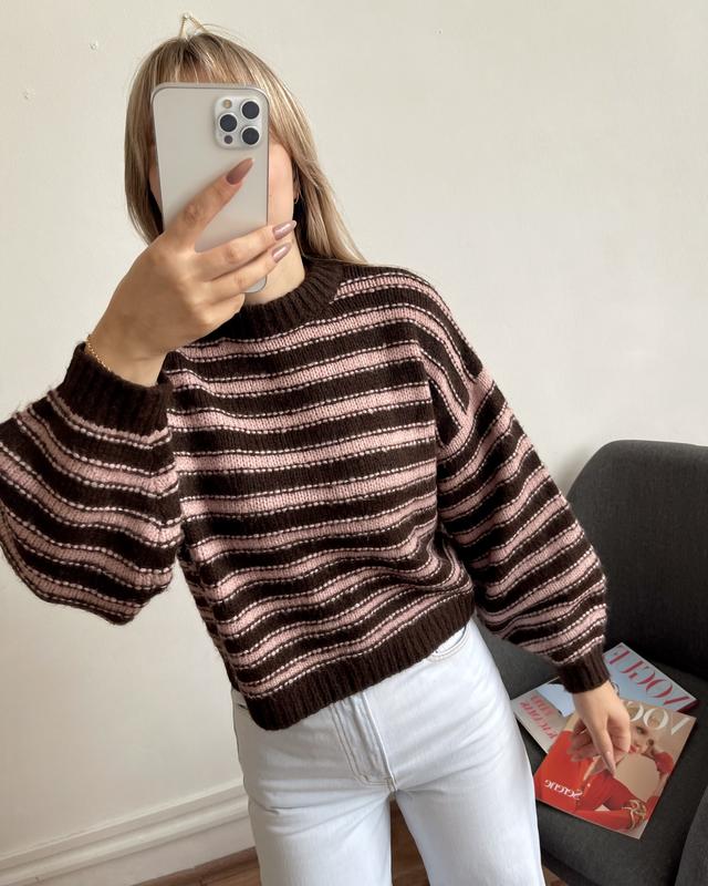 Topshop смугастий светр обʼємного крою мʼякий приємний матеріал стан ідеал ⠀ ціна 790грн ✔️ ⠀ розмір s заміри: ПОГ 57 см довжина 50 см, рукав 69 см ⠀ параметри на фото: 167 см, 83-62-91
