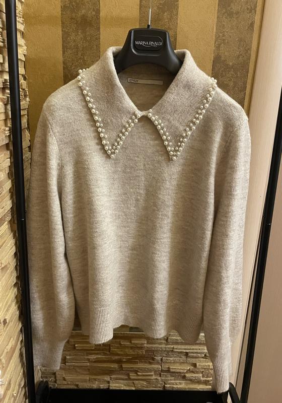 Светр з коміром вільного крою в розмірі м-л Комір оздоблений перлинками. Мʼякий, приємний на дотик. Чудова якість! Стан нової речі, без слідів носіння та будь-яких нюансів. Бренд “Only” Заміри: ног - 58см, довжина - 61см, довжина рукава від горловини - 77см.