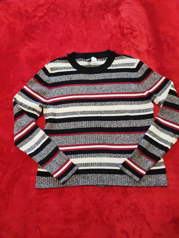 Свитер в полоску приятный к телу,размер L.Плечи 40, длина рукава 58, длина 53, тянется.