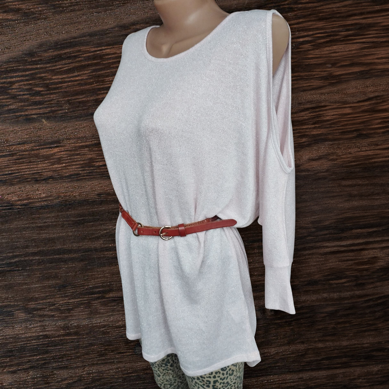 Кофта женская нарядная с открытыми плечами и люрексовой нитью. Без дефектов. Замеры на фото.