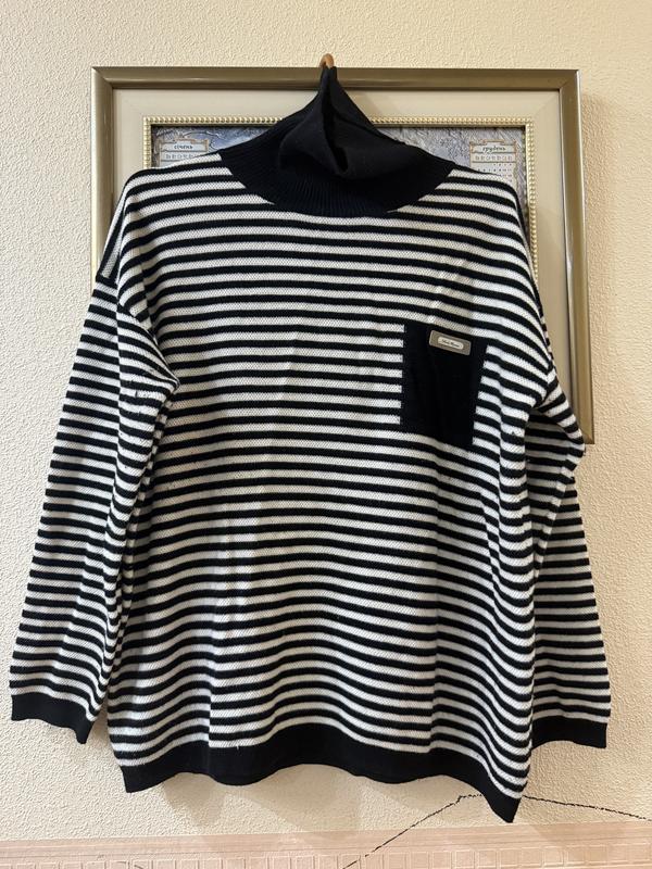 Жіноча кофтинка, чорно-білого кольору, з високою горловиною, розмір м-л, зручний, мʼякий і дуже теплий