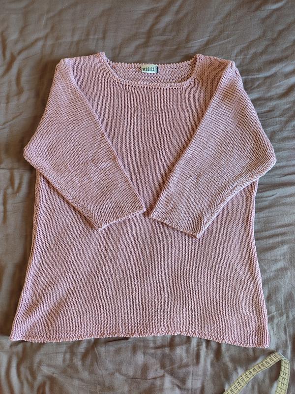 хлопковфй свитер нежного розового цвета, рукав укороченный, замеры на фото