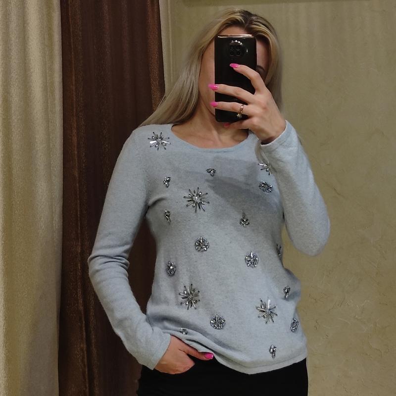 Кофта Размер М-L ПОГ - 46-49, ПОТ - 45-47, ПОБ - 50-51. Длина 56. 33% вискоза, 23% нейлон, 20% коттон, 20% шерсть, 4% кашемир Приятная мягкая ткань Отличное качество