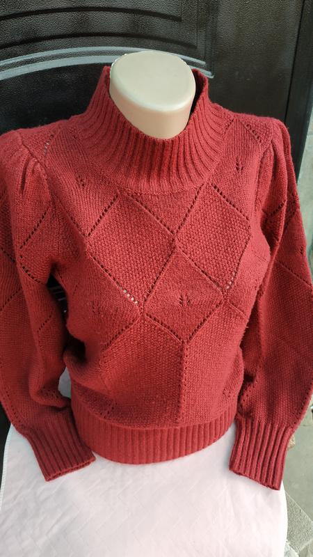 Теплый свитер, цвет морсал.(камера не передает цвет, на последних фото он ближе к аригалу). Размер S. Ширина 45см Длина 57см Рукав 61см.