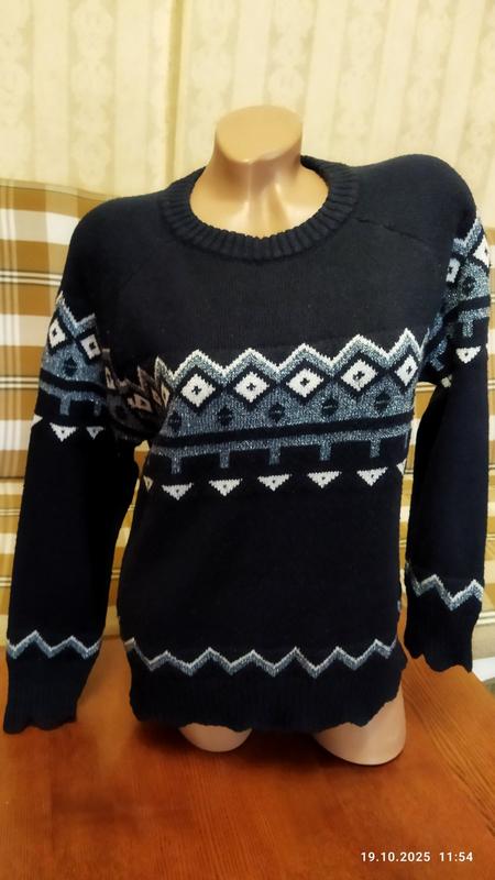 67% акрил, 28% полиэстер,5% люрексовая нить. Длина - 62 см, рукав - реглан 65 см., ПОГ - 54 см., полуокружность низа резинки - 47 см.