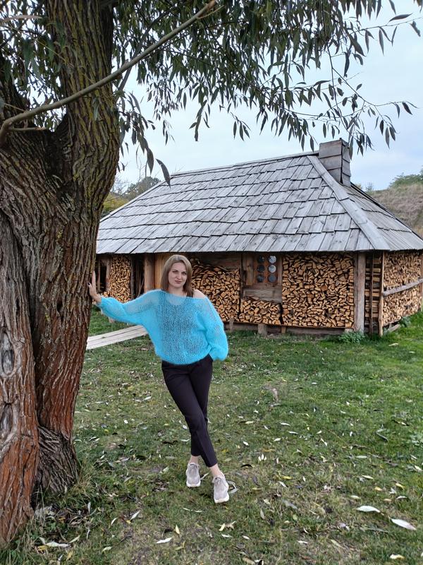 Свитер паутинки ручной работы. связан из длинноворсного мохера. Нежный и уютный, как облачко) Актуальный в любимое время года. Цвет "тифани"🩵 Размер оверсайз, S-XL. Под заказ в любимом цвете и размере 🧶