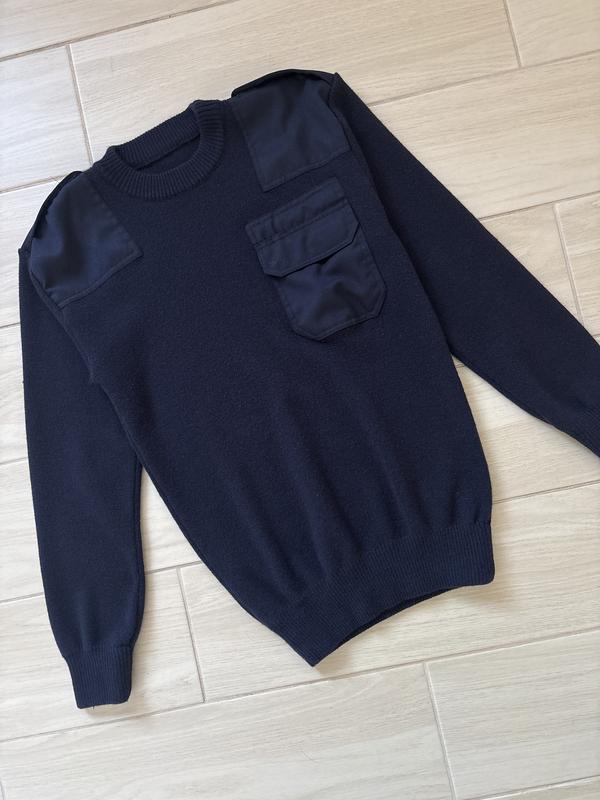 Тепла кофта, вовни 80%, акрил 20%. Розмір М - L. Колір темно-синьо-чорний. Стан близький до нового. Заміри: Плечі - 48 см ПОГ - 46 см ПОБ - 44 см Низ резинка - 32 см (тягнеться до 50 см) Довжина - 70 см Довжина рукава - 63 см. Бірка про виробника відсутня.
