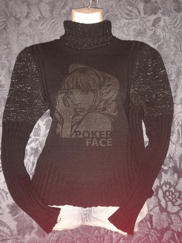 Свитер под горлышко,чёрного цвета. Имеются незначительные нюансы.