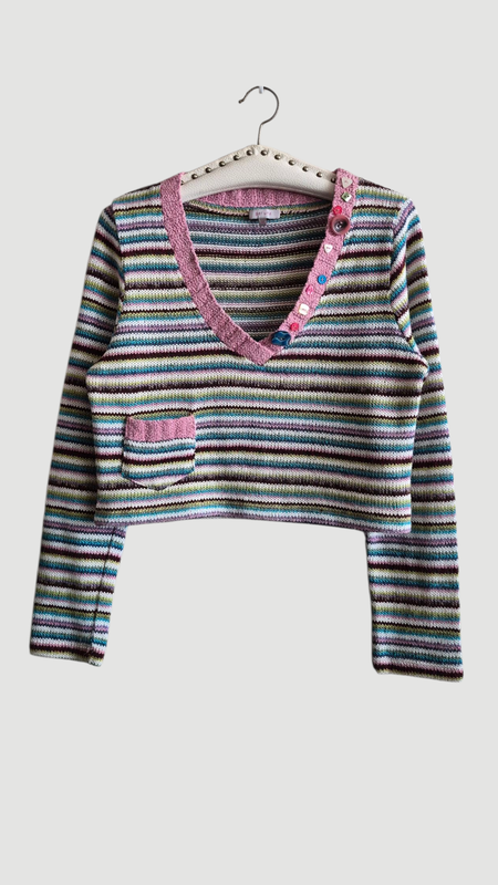 Укороченный свитер джемпер в полоску с v-образным вырезом per una р.l