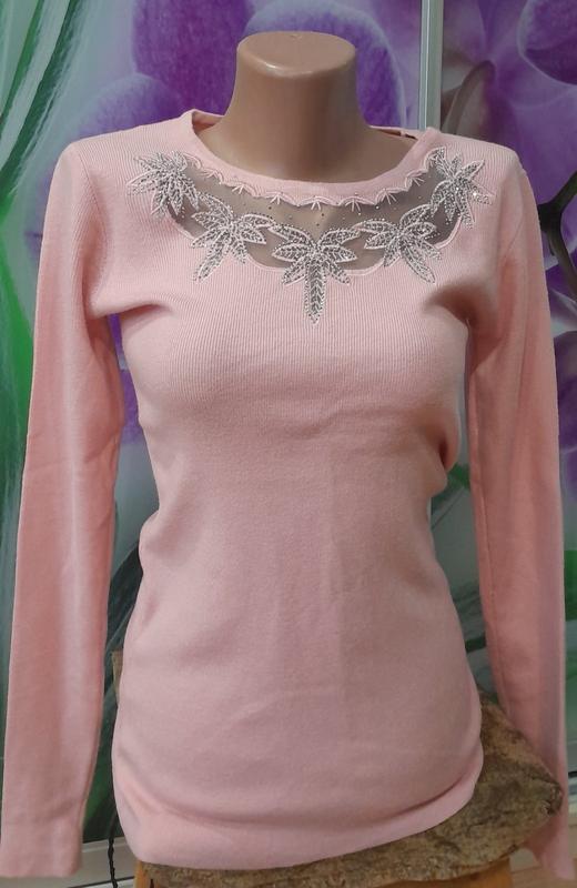 Свитер со стразами ангорка светло-розового цвета, размер универсальный 42-50