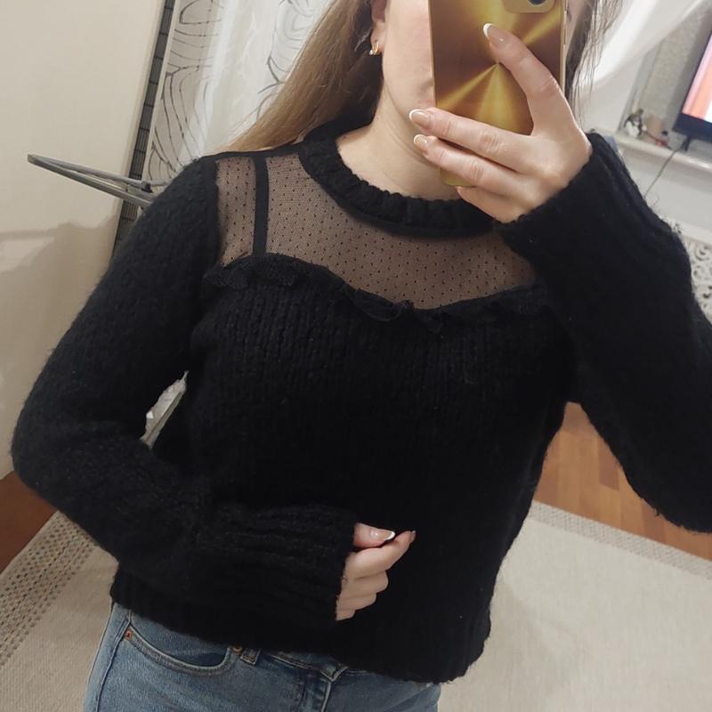 Черный вязаный кроп-свет, размер s, длина 47 см.