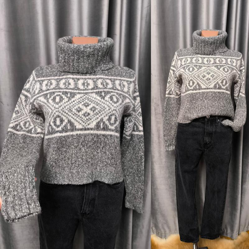 Стильный объемный шерстяной свитер гольф