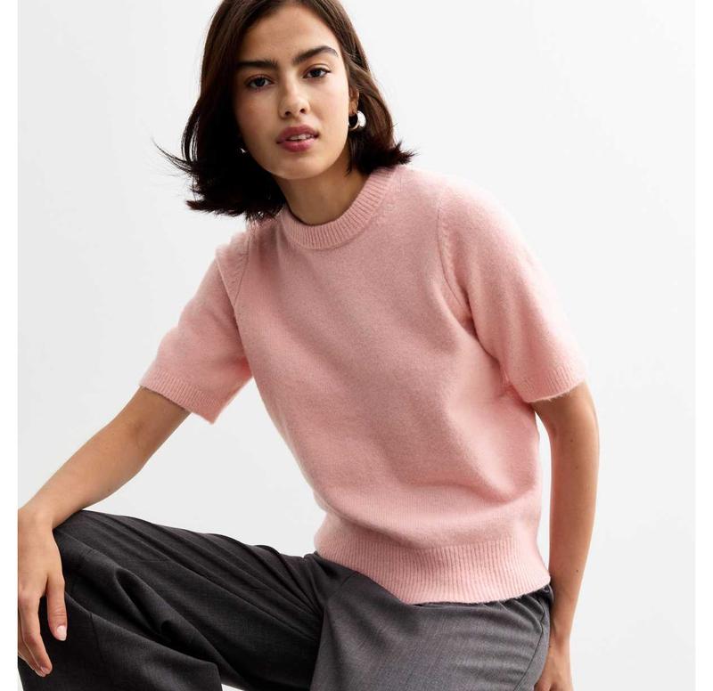 Рожевий (як на фото 1-2) м'який светр з короткими рукавами На м-л