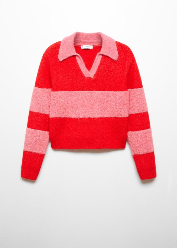 ДЖЕМПЕР Манго З КОНТРАСТНОЮ ВСТАВКОЮ ТА КОМІРОМ ПОЛО Трикотаж середньої товщини. Прямий фасон. Комір-поло. V-подібний виріз горловини. Довгі рукави. Контрастна вставка. Краї пов'язані гумкою. Виглядає 🔥🔥🔥 Розмір С-М,орієнтуйтеся по замірам Стан відмінний Обхват грудей 92,довжина рукава від коміра 75, довжина по спині 53