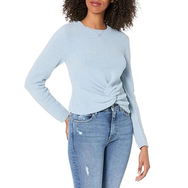 Пухнастий светр TheDrop. Очень приятный на ощупь, легкий и теплый р-р 5XL пог-71 пос-72 длина по спинке-70 длина по переду, учитывая,декоративный узел-80 плечо/рукав-15/63 новый В74в