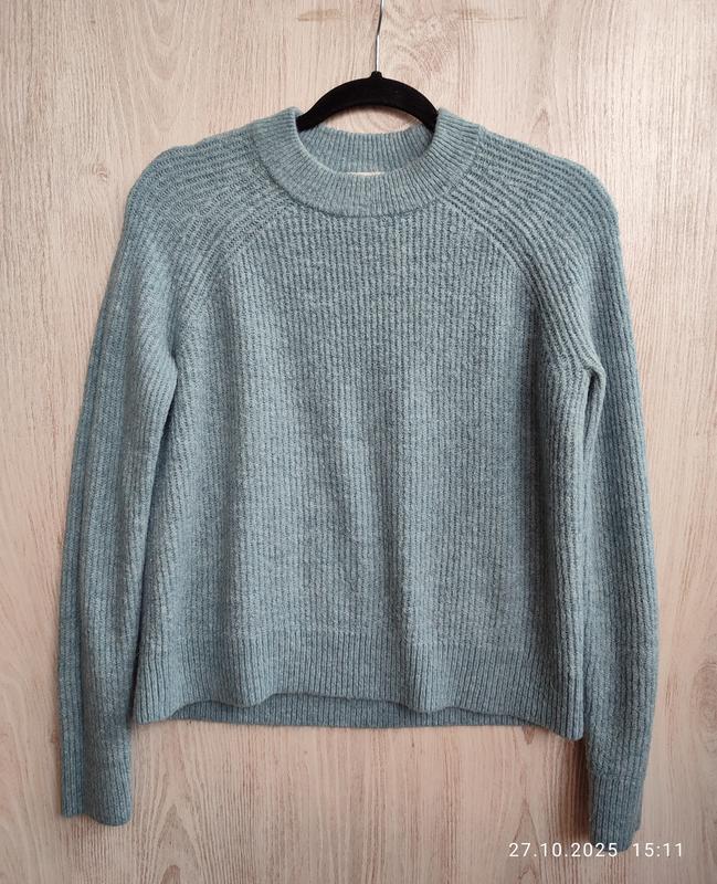 Укороченный свитер серо голубого цвета, мягкий и приятный, ПОГ - 52 см, длина - 51 см, рукав от горловины - 72 см, ПОС - 49 см.