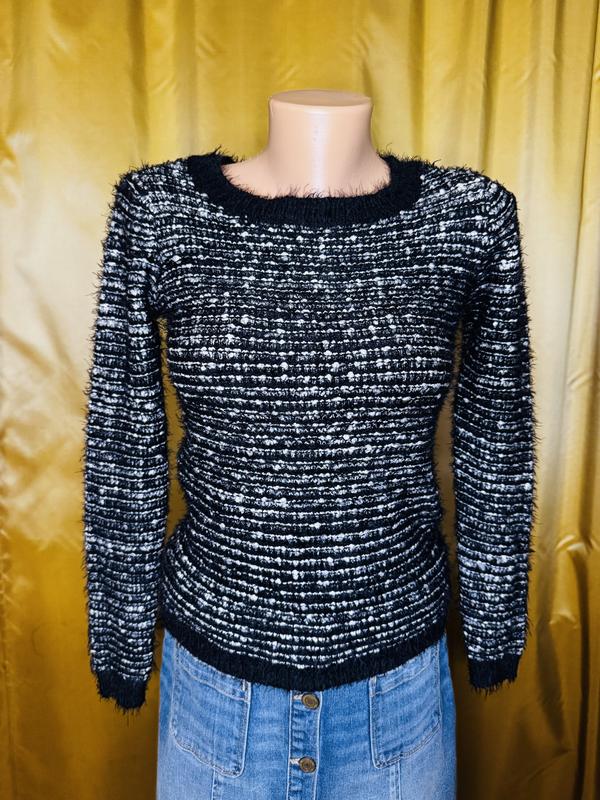 Стильний мʼякий светрик в чорно-білому кольорі, дуже оригінально виглядає вживу. Трохи тягнеться. Стан нової речі.