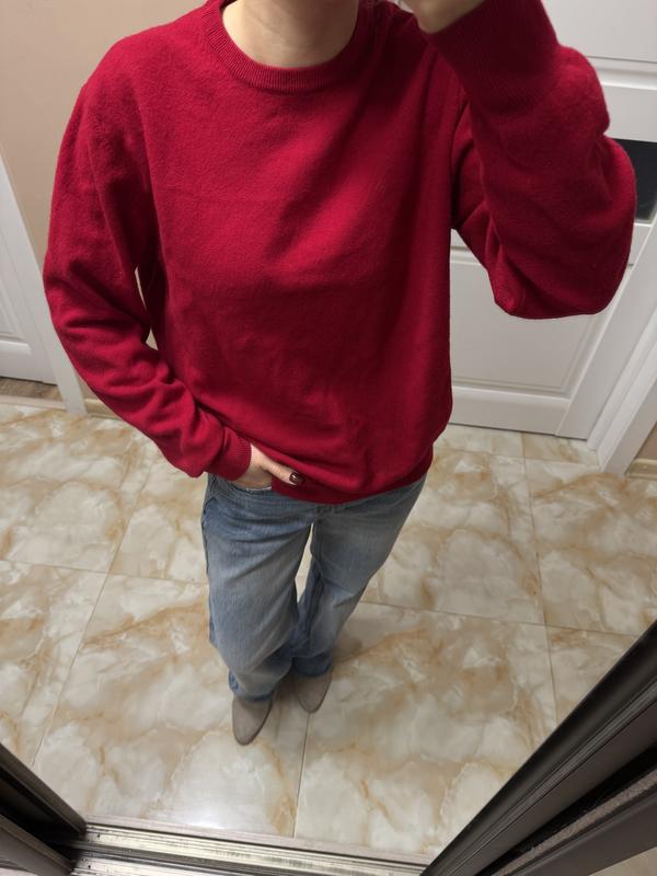 Шерстяной свитер красного цвета. Размер указанный xl, но маломерит на m-l, может быть на s (оверсайз) Длина 60 см, рукав 60 см, пог 56 см