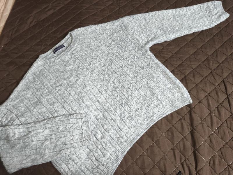 Интересный свитер, модный крой. Стан супер. Длина 55, пог 62см, рукав от шва 47, от воротника 70см.