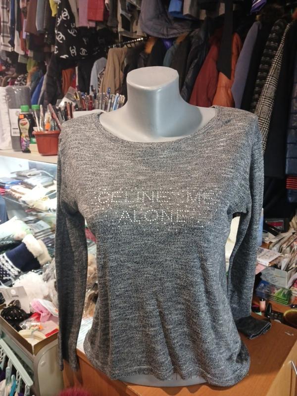 серый свитер. тоненький. с стразами. размер S-M. длина спереди 55см длина сзади 60 см плечи 46 см рукав 51 см по груди 52 см 100/993