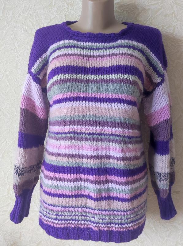 Шерстяной (50% шерсть, 10%мохер,40% акрил) цветной вязаный свитер, длина 68-70 см, обьем пг 110см, длина рукава от горловины 66-67 см