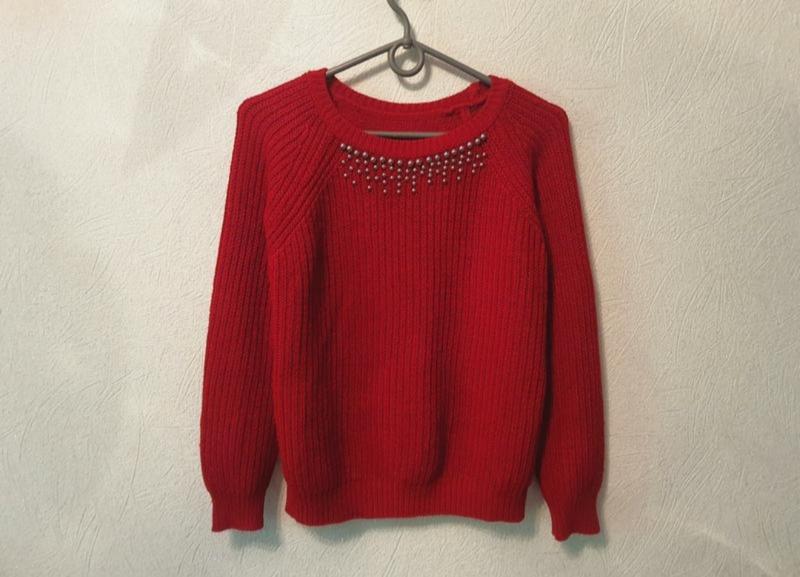 Длина 57, грудь 48, рукав до горла 62 см. Вязка средней плотности, крой свободный.