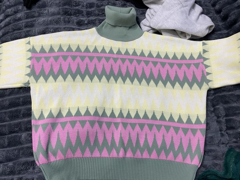 Вʼязаний светр з яскравим геометричним різнокольоровим принтом ; під горло, дуже теплий