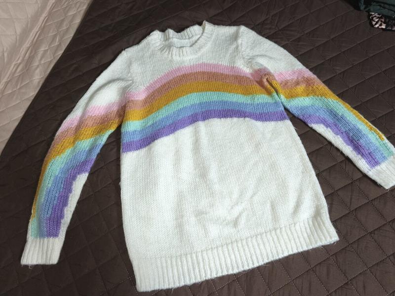 Молочный свитер с радужной Стан супер. Длина 66, пог 48. Рукав 60
