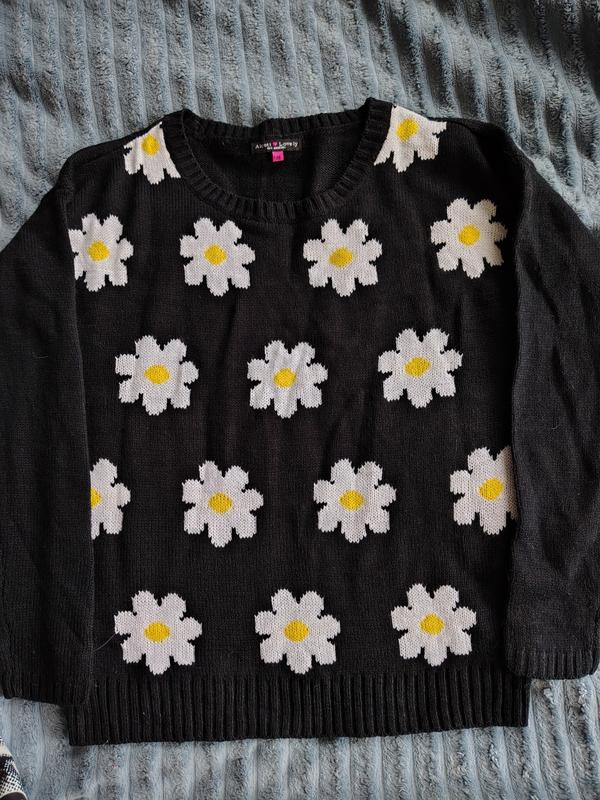 Свитер женский черного цвета с узором в виде цветков ромашек