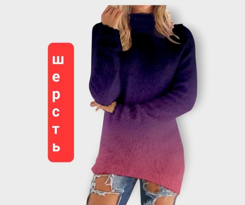 новый свитер с удлиненным воротом , красивого градиентного цвета от темно фиолетового р.с длина 67см Рукав 60см пог 40-44см Пот 35+ Поб 43+