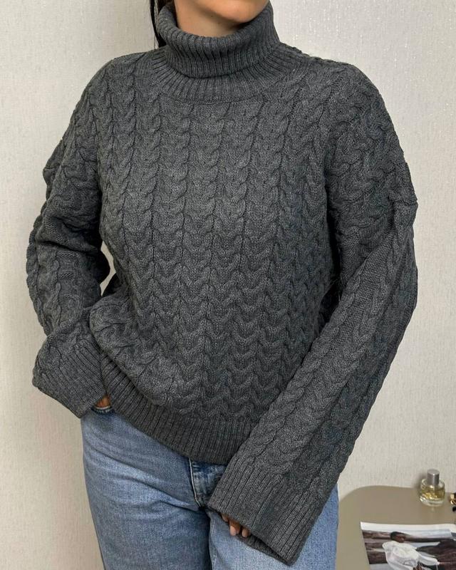 В’язаний светр з високим коміром, текстурою у вигляді косичок та вільним фасоном💜 Ідеально підходить для стильних та комфортних образів. Виробник: Туреччина Розмір: 42-46 Тканина: 70%акрил, 30% вовна Колір: чорний, графіт Ціна 1500 Виміри: Довжина: 52см Обʼєм грудей: 120см Рукав довжина від шиї: 65см №3028