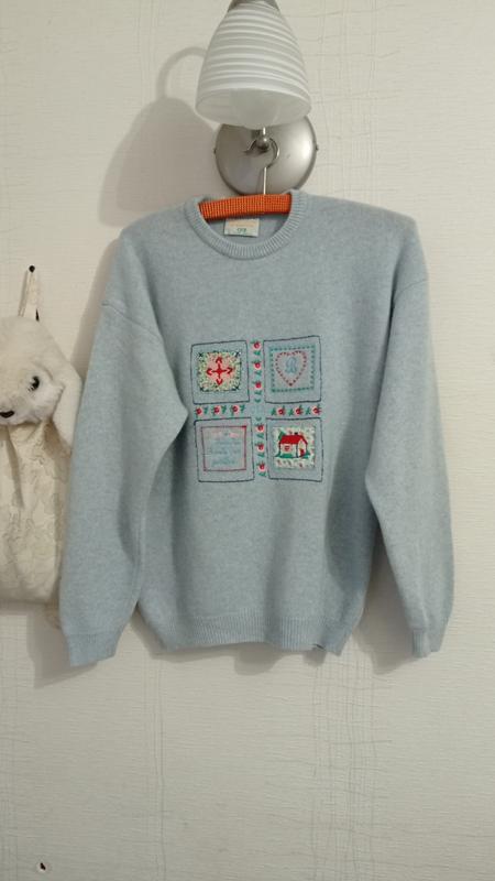 В пбездогантом состоянии, мягкий, нежный. Спущенные плечи, свободный. Сделано в Италии. Размер около S-M. Плечи - 51, рукав - 48, от горловины - 71, подмышками - 49, длина - 58.