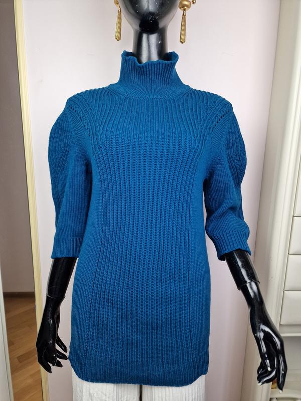 Элегантный и лаконичный джемпер от культового немецкого бренда Jil Sander, известного своей философией «чистой роскоши» и минимализма. Изготовлен в Италии из премиальной смеси 70% шерсти мериноса и 30% кашемира — плотная, упругая вязка, идеально держащая форму. Глубокий насыщенный сине-бирюзовый оттенок подчеркивает текстуру и делает вещь выразительной, но не кричащей. Модель с архитектурной линией плеч, рукавами 3/4 и воротником-гольфом; посадка прямая, визуально вытягивает силуэт. Такой свитер отлично сочетается с юбками-карандашами, брюками палаццо и пальто строгого кроя. 📍 Состав: 70% virgin wool, 30% cashmere 📍 Размер: 38 IT (соответствует S–M) 📍 Цвет: глубокий сине-бирюзовый (teal blue) 📍 Производство: Италия 📍 Период: осень-зима 2013/2014 📍 Состояние: отличное, без дефектов 📍 Ориентировочная цена в бутике: 1200–1500 € 📍 Рыночная стоимость аналогов на resale: 400–600 € 💬 Это вещь, в которой чувствуются ДНК бренда Jil Sander — строгая чистота линий, интеллектуальный стиль и премиальная фактура. Подойдёт тем, кто ценит архитектурный крой и люксовую классику без логомании. Размер : длина 70 см , длина рукава 41 см , полуобхват груди от подмышки до подмышки в спокойном состоянии в нерастянутом виде 43 см, но тянется до полуобхват груди 54 см , полуобхват талии в спокойном состоянии в нерастянутом виде 42 см , высота горловины 10 см .