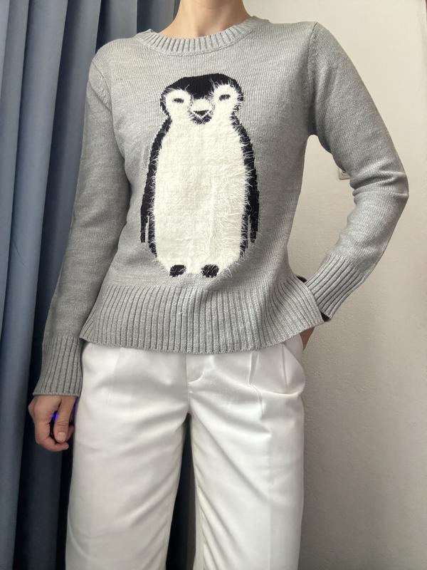 Сірий светр з пінгвіном Стан ідеальний Бірка зі складом зрізана Розмір S Заміри: плечі-39 см, рукав-63 см, півобхват грудей-47 см, довжина-60 см