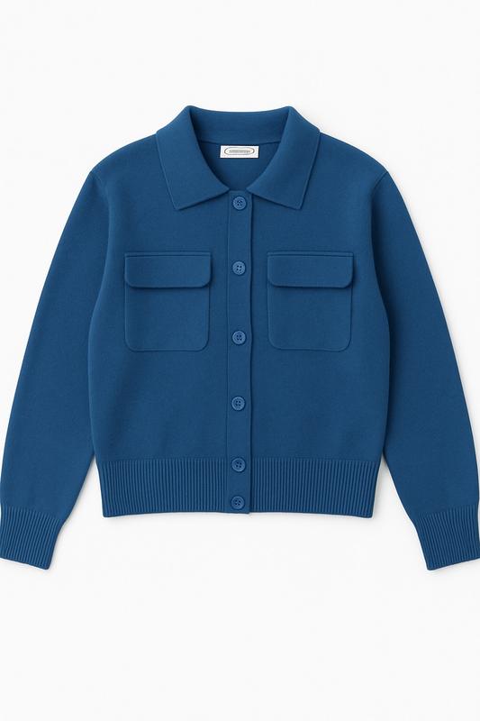 Розмір XXS, XS (більшомірить) Стильний синій кардиган від Primark. Класичний фасон із комірцем і накладними кишенями спереду. М’який, приємний до тіла матеріал, добре тримає форму. Ідеально пасує до джинсів, штанів чи спідниці. Підійде для щоденного образу або офісного стилю.