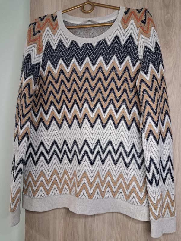 Представляем вашему вниманию уютный и стильный джемпер от известного британского бренда Tu. Эта вещь станет отличным дополнением к вашему гардеробу, добавляя ярких акцентов и комфорта. Дизайн выполнен в привлекательном узоре «шеврон» (зигзаг) – трендовом элементе, который возвращается в моду. Цветовая гамма включает классический черный, нейтральный белый и теплый горчично-коричневый оттенки. Материал: изготовлен из смеси мягкого акрила и полиэстера, что обеспечивает тепло и приятные ощущения. Фасон: классический крой, круглый вырез горловины, длинные рукава и эластичные манжеты и подол для лучшей посадки. Легко сочетается как с классическими джинсами и брюками, так и с юбками разных фасонов. Мягкая и теплая ткань идеально подходит для прохладной погоды. Яркий геометрический принт всегда смотрится свежо и привлекает внимание. Сделайте свой образ выразительным и модным с этим замечательным джемпером Tu!