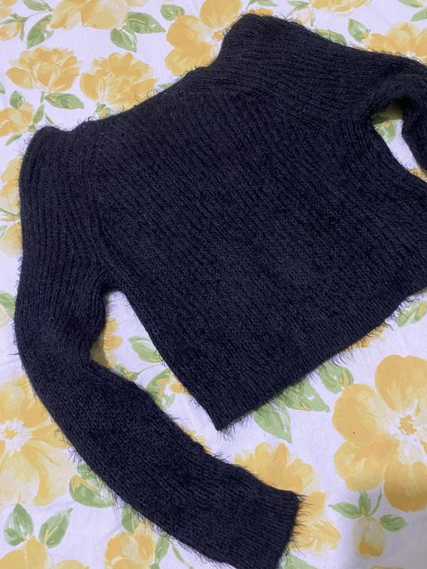 Пухнастий сучасний вкорочений светрик черного кольору не щільний продаж від 100 гр