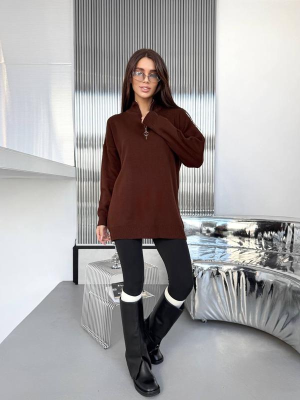 НОВИНКА🔥 Удлиненный оверсайз свитер с молнией Хочешь выглядеть стильно и чувствовать максимум комфорта? Данная модель — именно то, что нужно 💫 ✨ Идеальный баланс качества и ощущений: ▪️ Мягкий, нежный, не колется - твой любимый свитер с первого прикосновения ▪️Модель 5040/99 ▪️Вязка: 50% коттон, 50% акрил держит форму, приятный к телу ▪️ Производство: Турция ▪️ Молния по горловине - стильный акцент + удобство в носке ▪️Цвет: шоколад ▪️Размеры: оверсайз (42-50) 🏷️Цена: 1100 грн. ▫️ ОГ — до 125-130 см ▫️ Длина - 71 см ▫️ Длина рукава от горловины - 70 см ✨ Идеально сочетается с джинсами, леггинсами или юбкой – универсальный вариант на каждый день. Твой стиль, твой комфорт, твой новый must-have 🤍