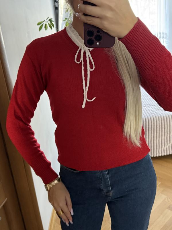 Червоним светр з V- подібним вирізом Рр с-м Дуже мʼякий На фото одягнений з білою блузою
