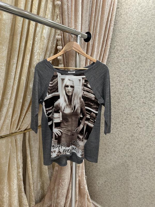 Женский свитер Brigitte Bardot, оригинал В очень хорошем состоянии Цвет серый Перед с крупным фотопринтом Brigitte Bardot Рукав 3/4 Мягкий тонкий трикотаж Состав: перед 50% полиэстер, 50% вискоза; спинка и рукава 100% акрил Размер S