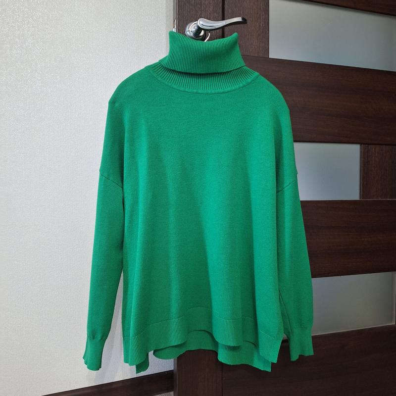 Свитер под шею, свободного кроя, удлиненный. По бокам имеет разрезы. Сзади чуточку длиннее перод.Рукав спущен Мягкий и приятный к телу. Бирки со составом нет.Но чувствуется что есть кашемир. длина сзади 66 см длина спереди 62 си пог 62 см рукав от горловины 69 см