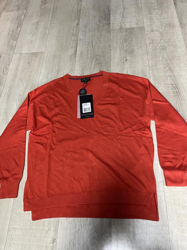 Червоний светр із V-подібним вирізом від Zilch Розмір пише XS ( але по факту S-M ) Вільного крою ( бо бокам є розрізи ) В плечах: 51 см ПОГ: 50 см ПОТ: 45 см Довжина: 54 см Довжина рукава: 42 см